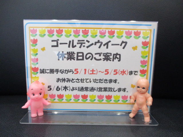 本日はGWの休業のお知らせです。