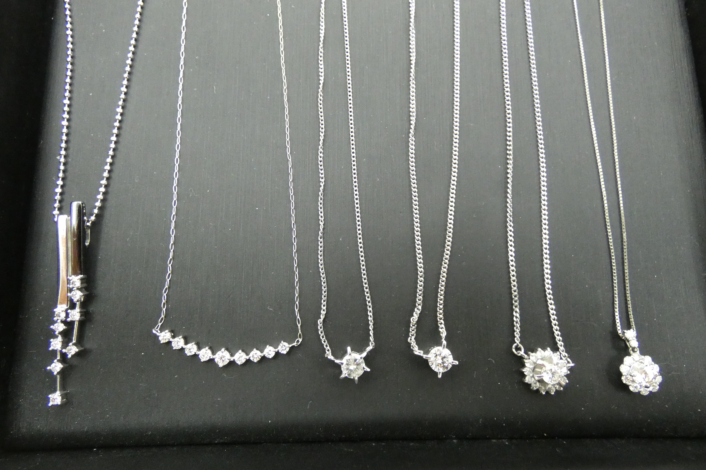 様々なタイプのダイヤモンドネックレスでございます。