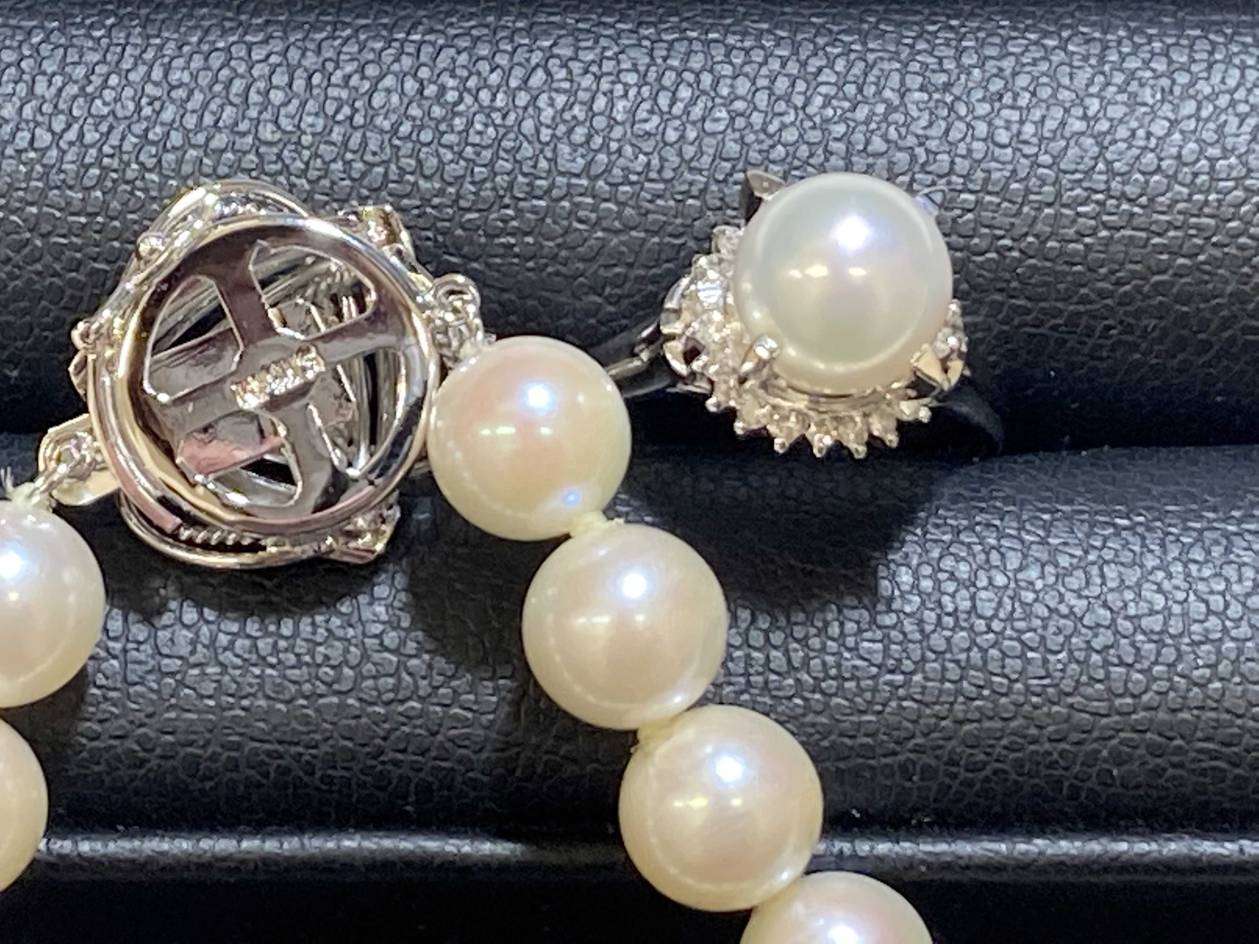 真珠の留め具などにはsilverが使われることが多いのですが、これはクラスプ(留め具)の強度の問題や価格の問題とも言われています。