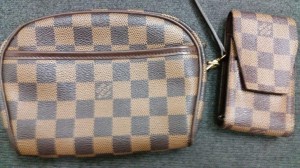 ルイヴィトン(LV)のダミエのポーチとタバコケースです。