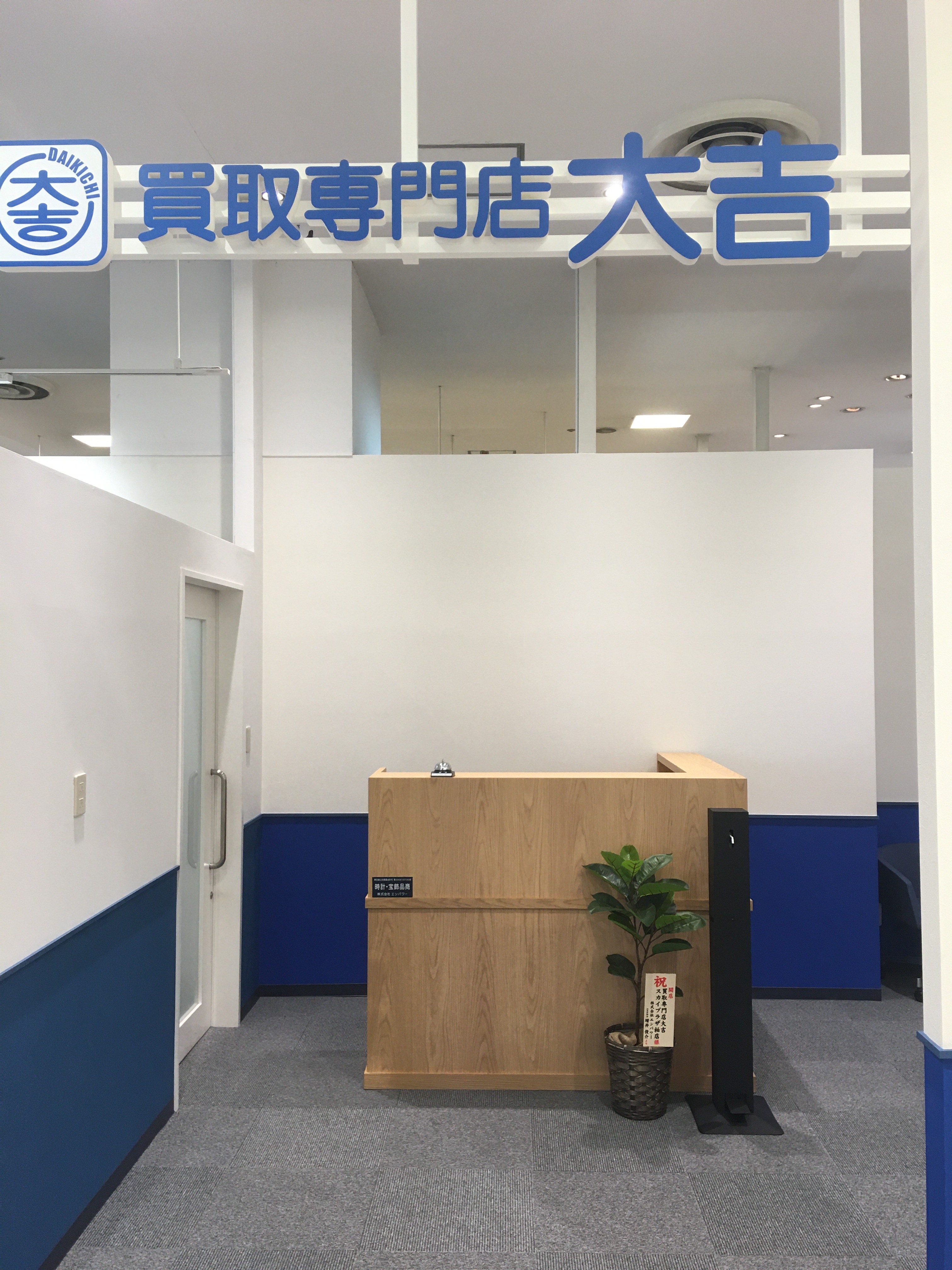 【買取専門店 大吉は、地域のコミュニティセンターを目指しています。】 大吉はどんな方にも気兼ねなく入っていただける店舗づくりを行っています。 目指すはカフェやその街の地域のコミュニティセンター的な存在になること。 目にまぶしい色や貴金属の派手な装飾は避け、青と白を基調にした落ち着いたデザインは、 はじめてお越しの方にもリラックスして頂けると好評です。