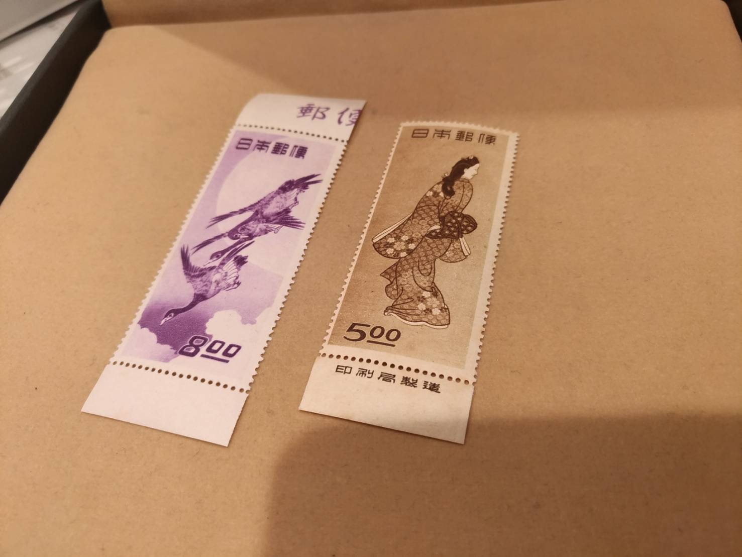 現在では非常に希少価値のある切手「見返り美人」と「月に雁」です。