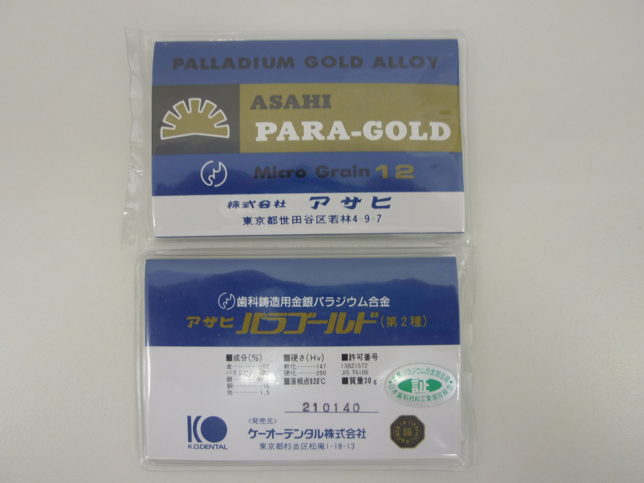 歯科金属、歯科用12%金パラの他にも、金、パラジウム、プラチナが含まれる