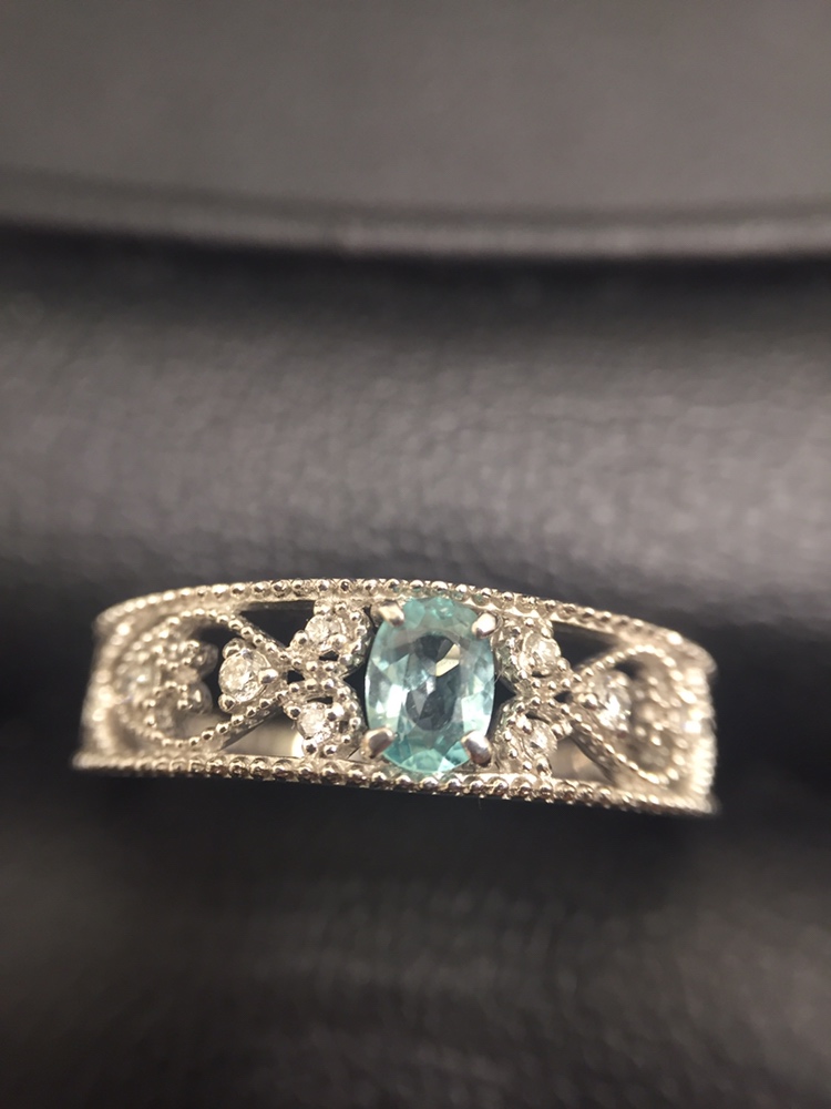 プラチナ素材と輝くグランディエライトが素敵なリングですね。
