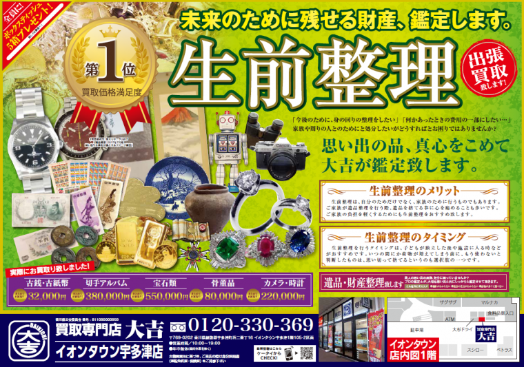 生前整理~未来の為に残せる財産鑑定いたします。買取専門店大吉イオンタウン宇多津店 | イオンタウン宇多津店