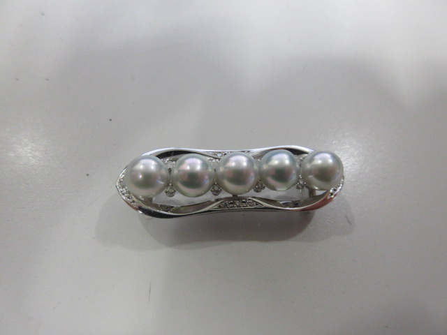 今回お持ちいただいた帯留めはグレーカラーの真珠とダイヤモンドが付いた逸品です。