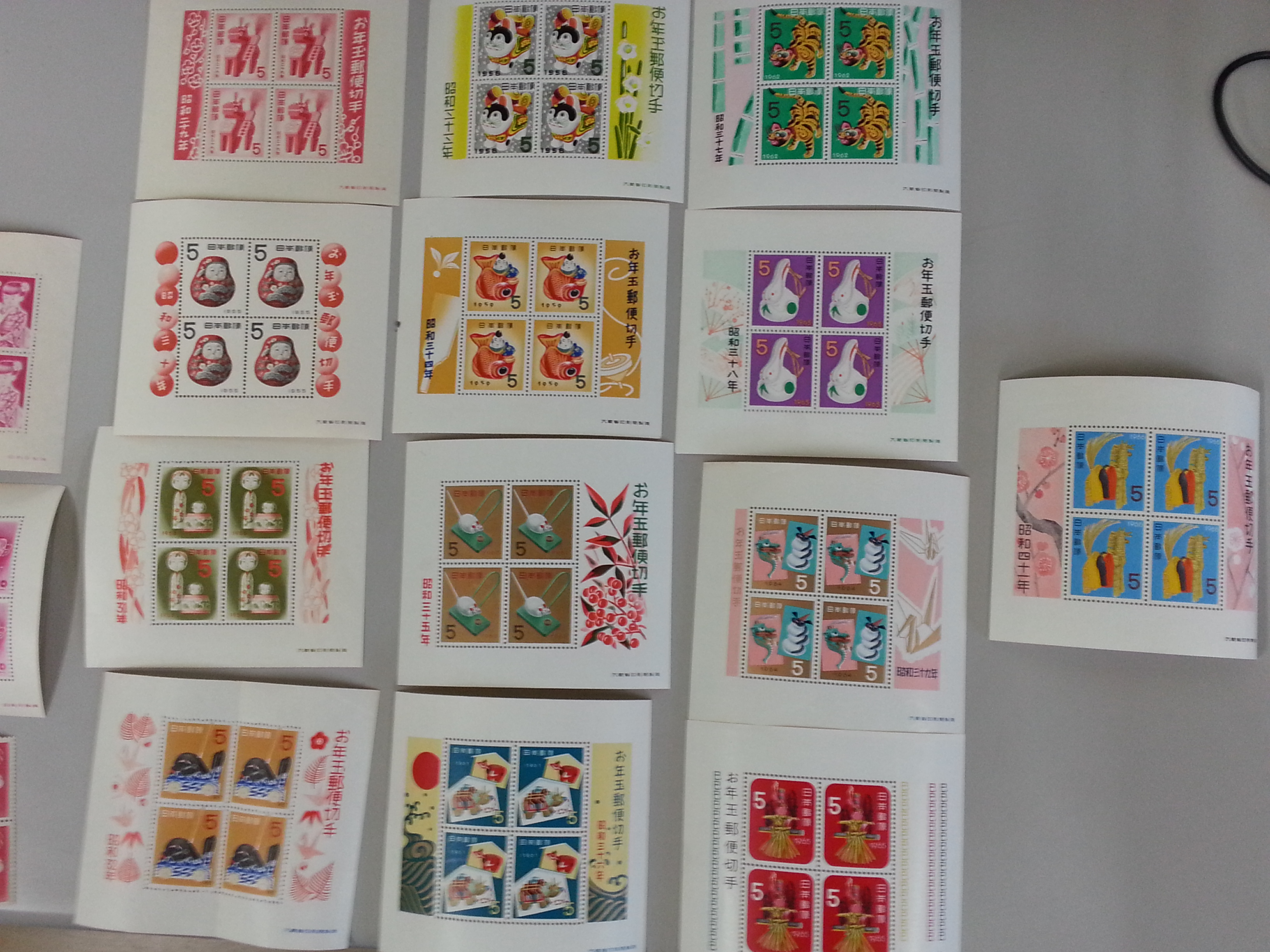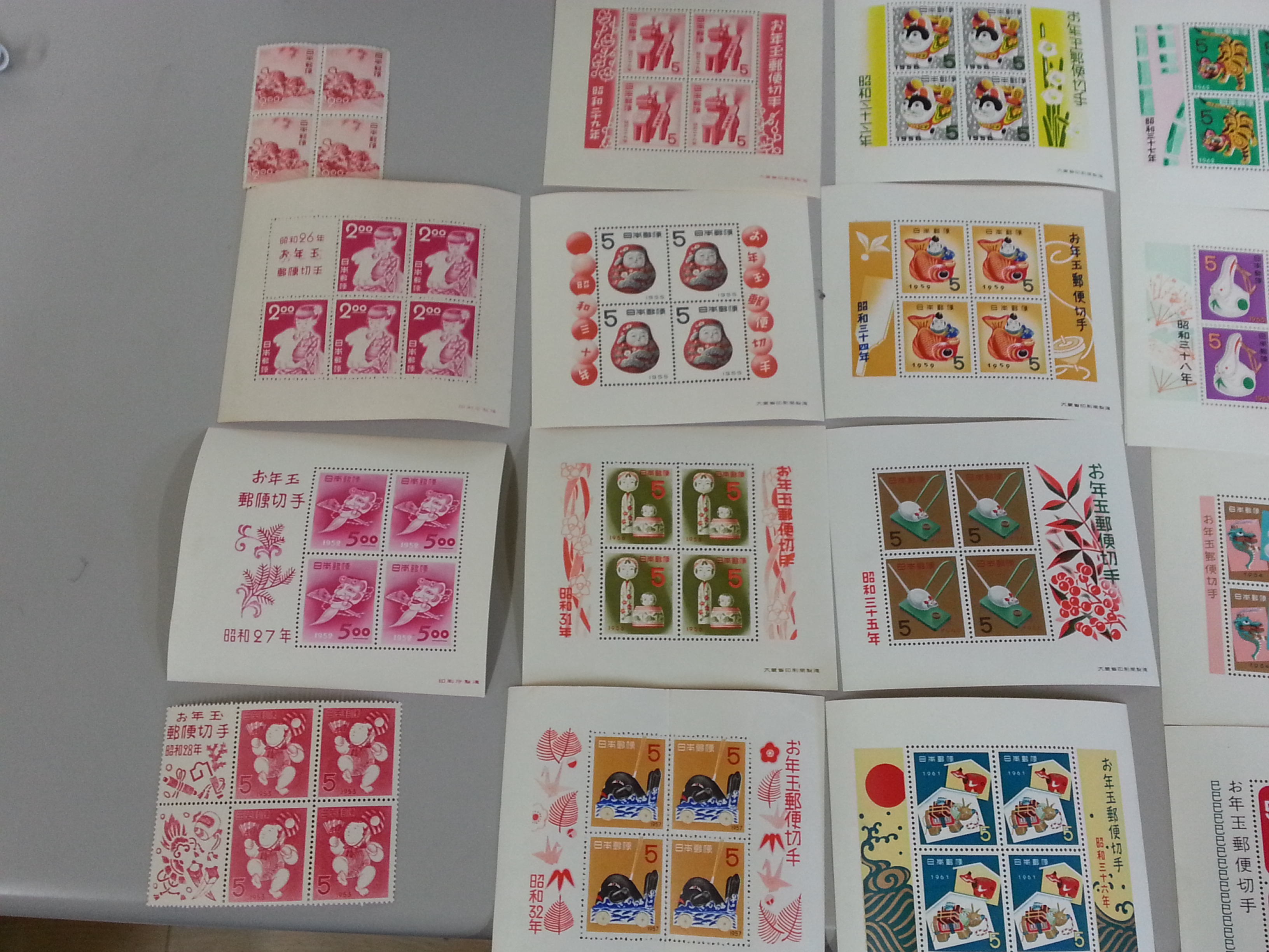切手は値上がりするこはほとんどありませんが、このようなお年玉切手 昭和26年~昭和41年+応挙虎 年数が揃っているとなると
