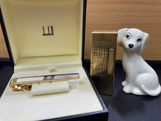 本日は、おうちの片づけをしていたらタンスの片隅から出てきたダンヒルのライターとタイピンです。