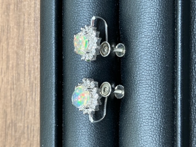 Pt900の地金にオパールの付いたイヤリングです✨