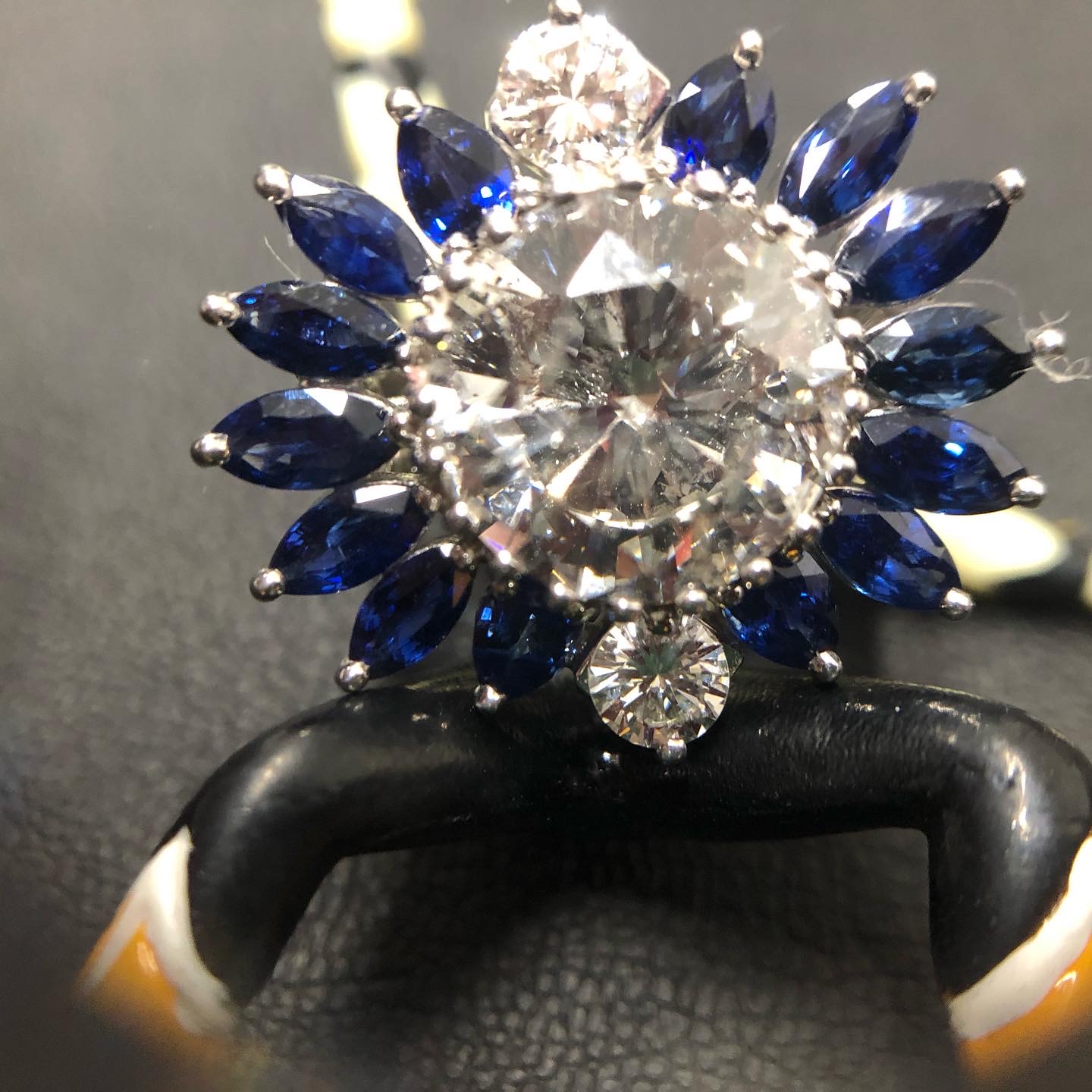周りのサファイヤも3ctオーバー メレダイヤも0.3~0.4ctと