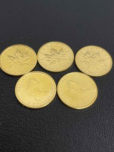 こちらはメイプルリーフ金貨1/10 ozでございます。