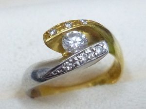 一粒ダイヤモンドと、18金とプラチナのコンビが土台になっている指輪です。