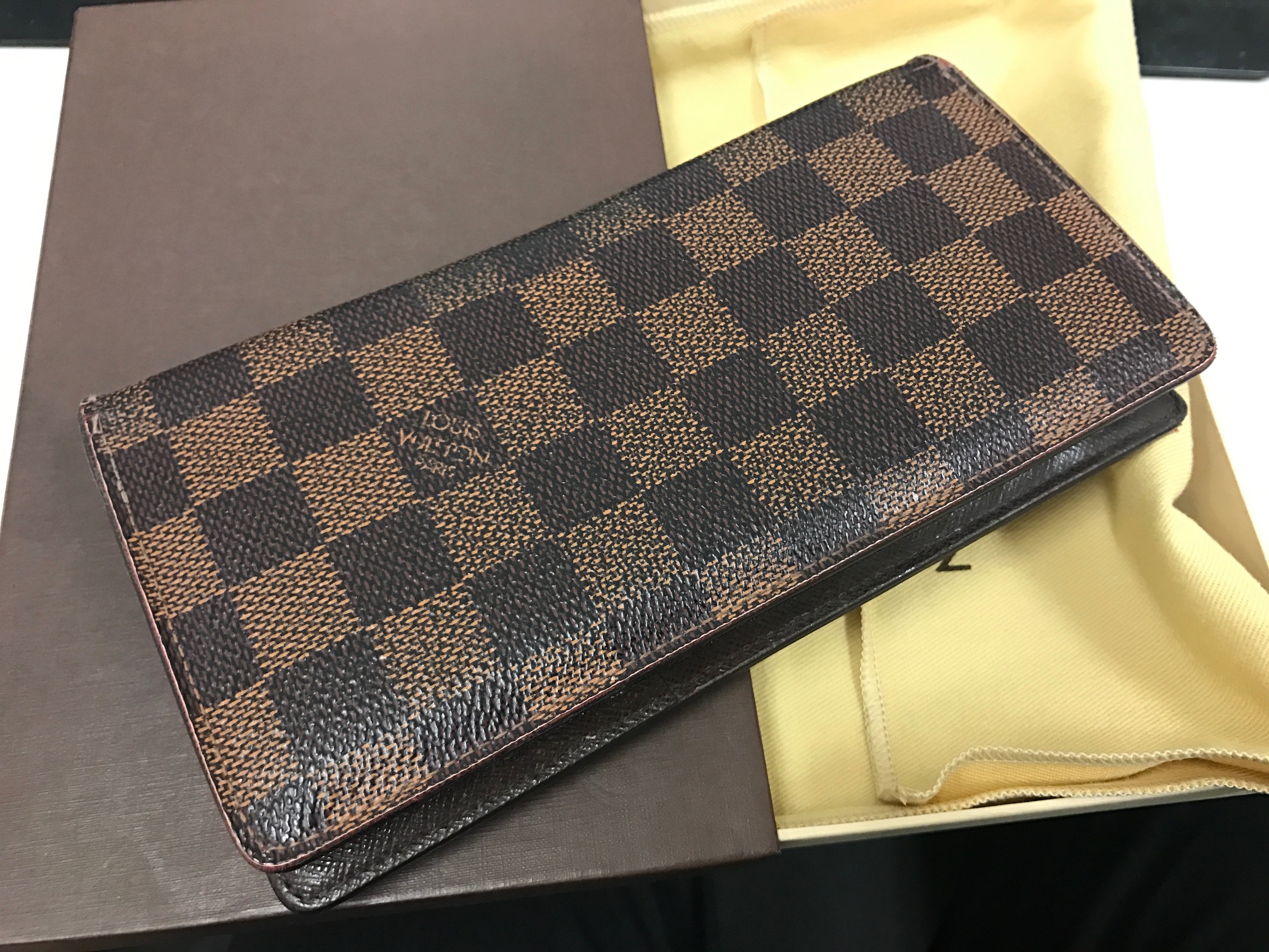 Louis Vuitton(ルイ・ヴィトン)のダミエの折財布で、どちらかというと男性向けですね。