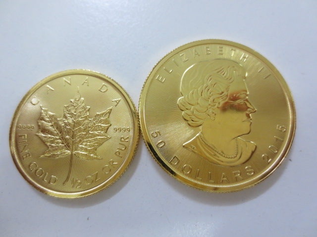メイプル金貨 1オンス 1/2オンス 2枚です。