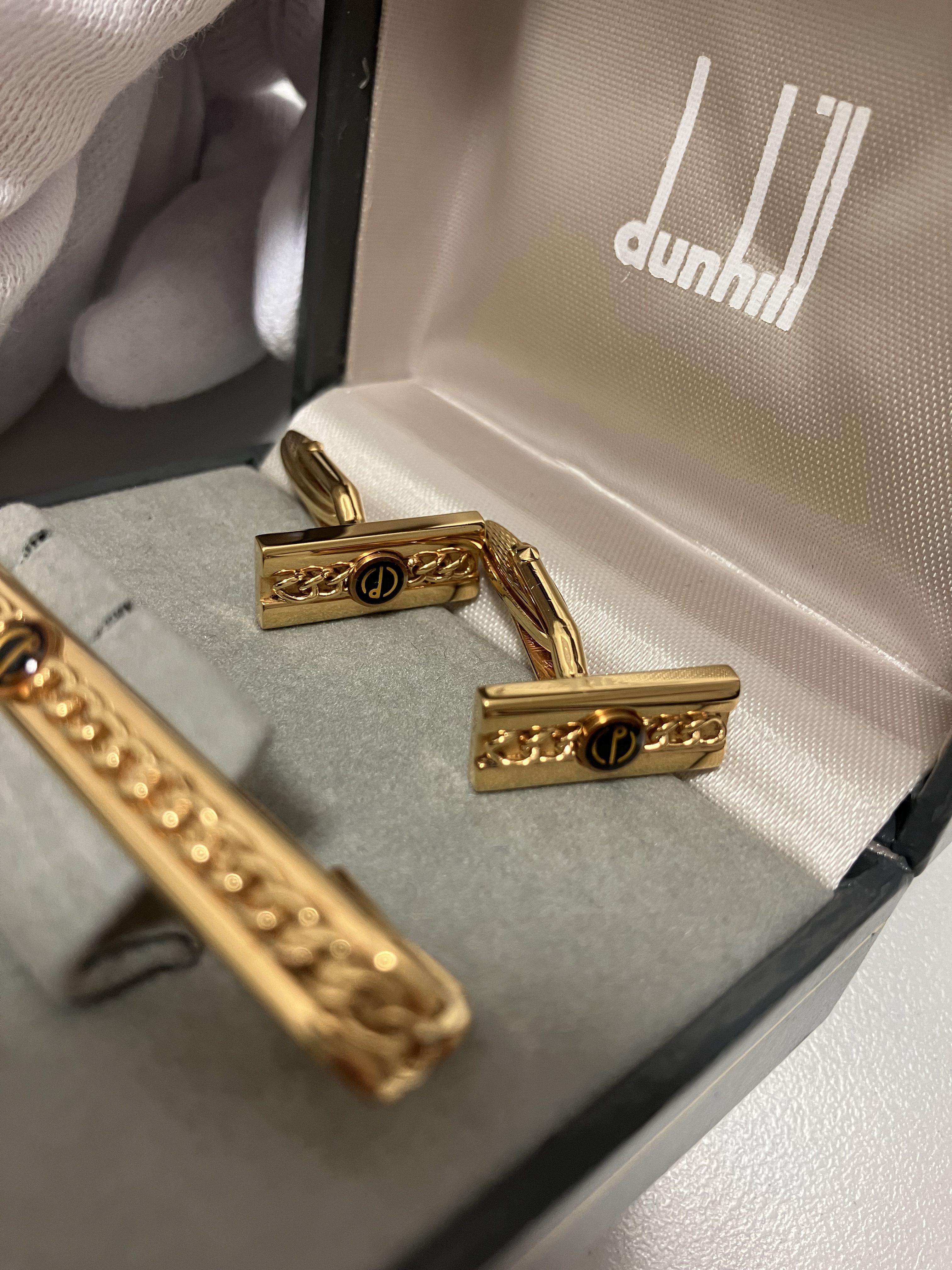 写真は、ダンヒルのネクタイピンと