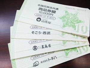 全国百貨店共通商品券や信販系ギフトカード、イオン商品券など高価買取をしていますので