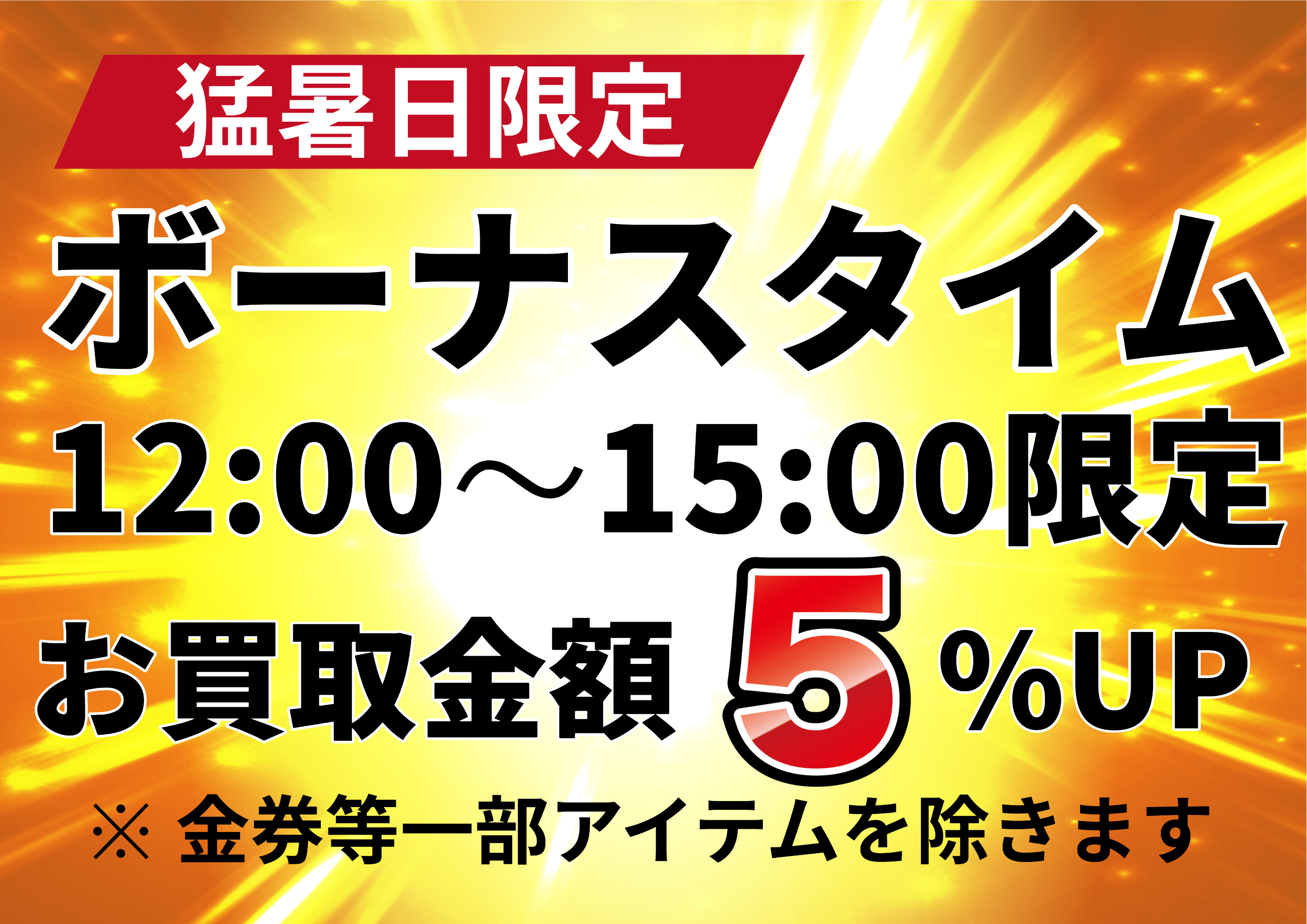 当店は猛暑日に限り、ボーナスタイムを設けてお買取金額UPを実施。