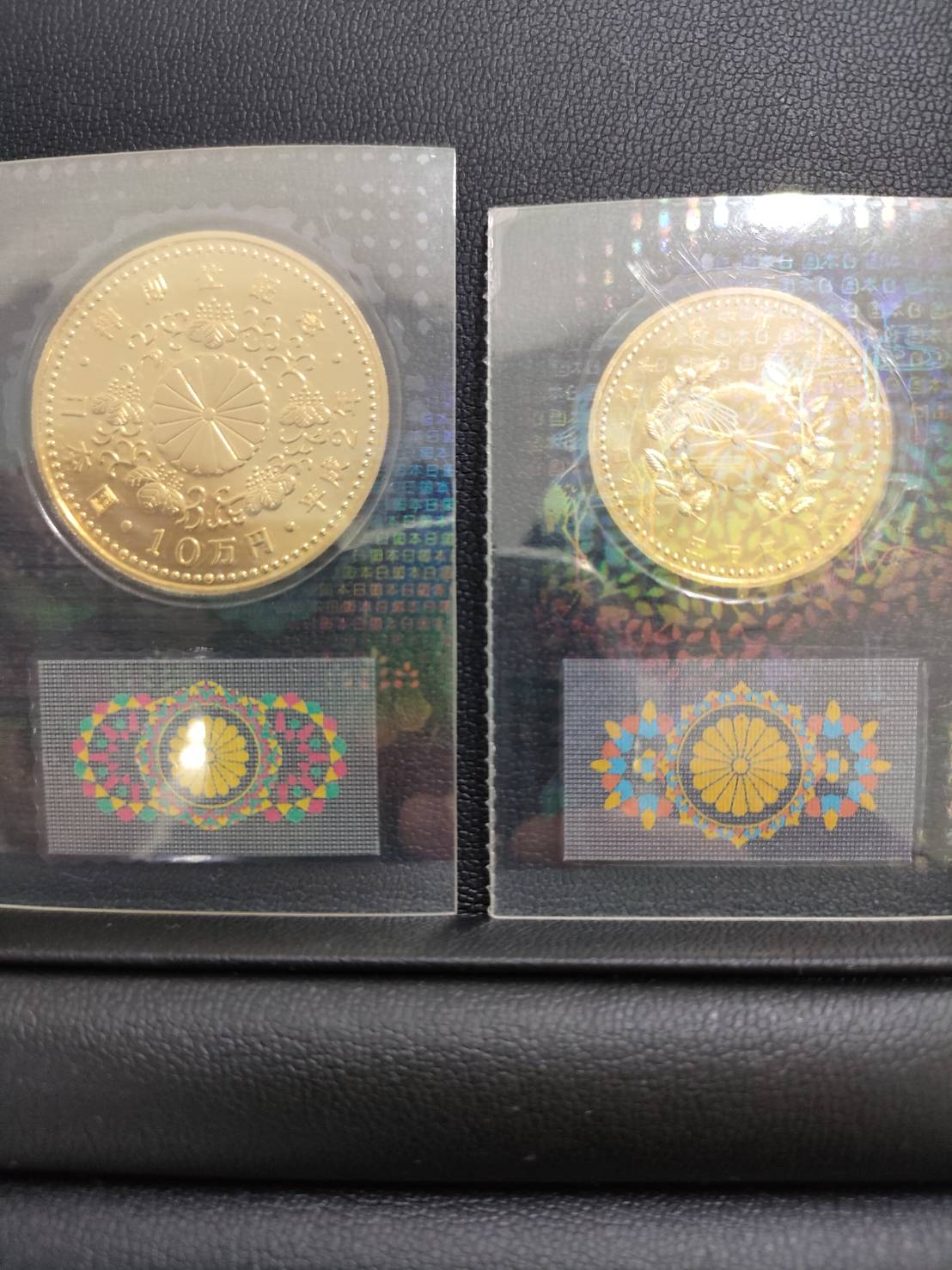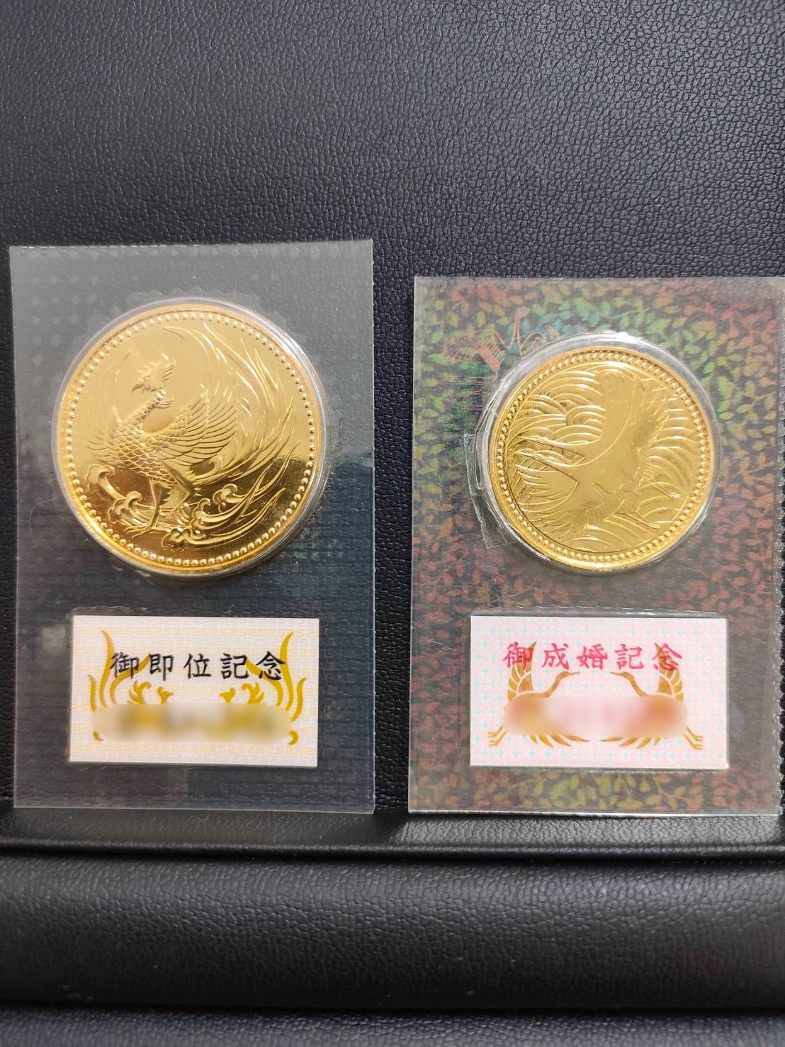 天皇陛下御即位記念10万円金貨・皇太子殿下御成婚記念5万円金貨をお持込みいただけました。