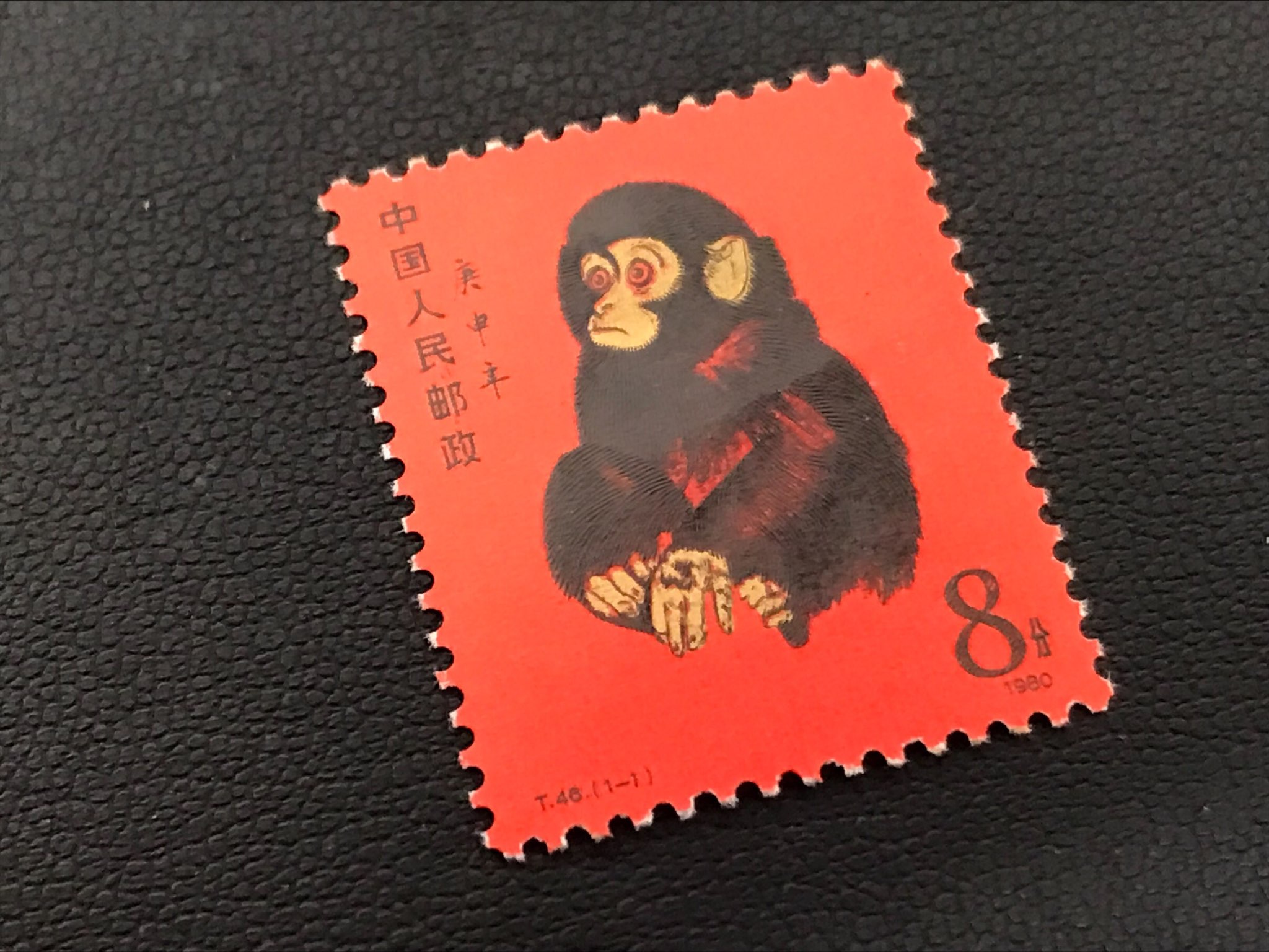 中国十二支切手シリーズの第1弾として1980年に発行しされた切手で、赤い背景に子猿のイラストが描かれていまね!(^^)!