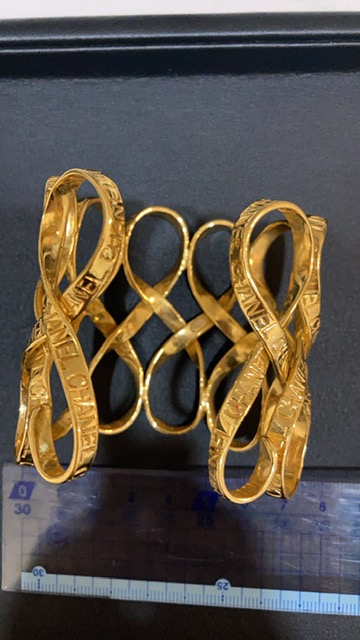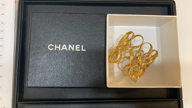 さて、先日シャネルのバングルを買取させていただきました。ゴールドカラーのゴージャスなアクセサリーとなっております。