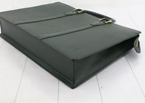 グリーン色で、会社に行くビジネスバックですが、