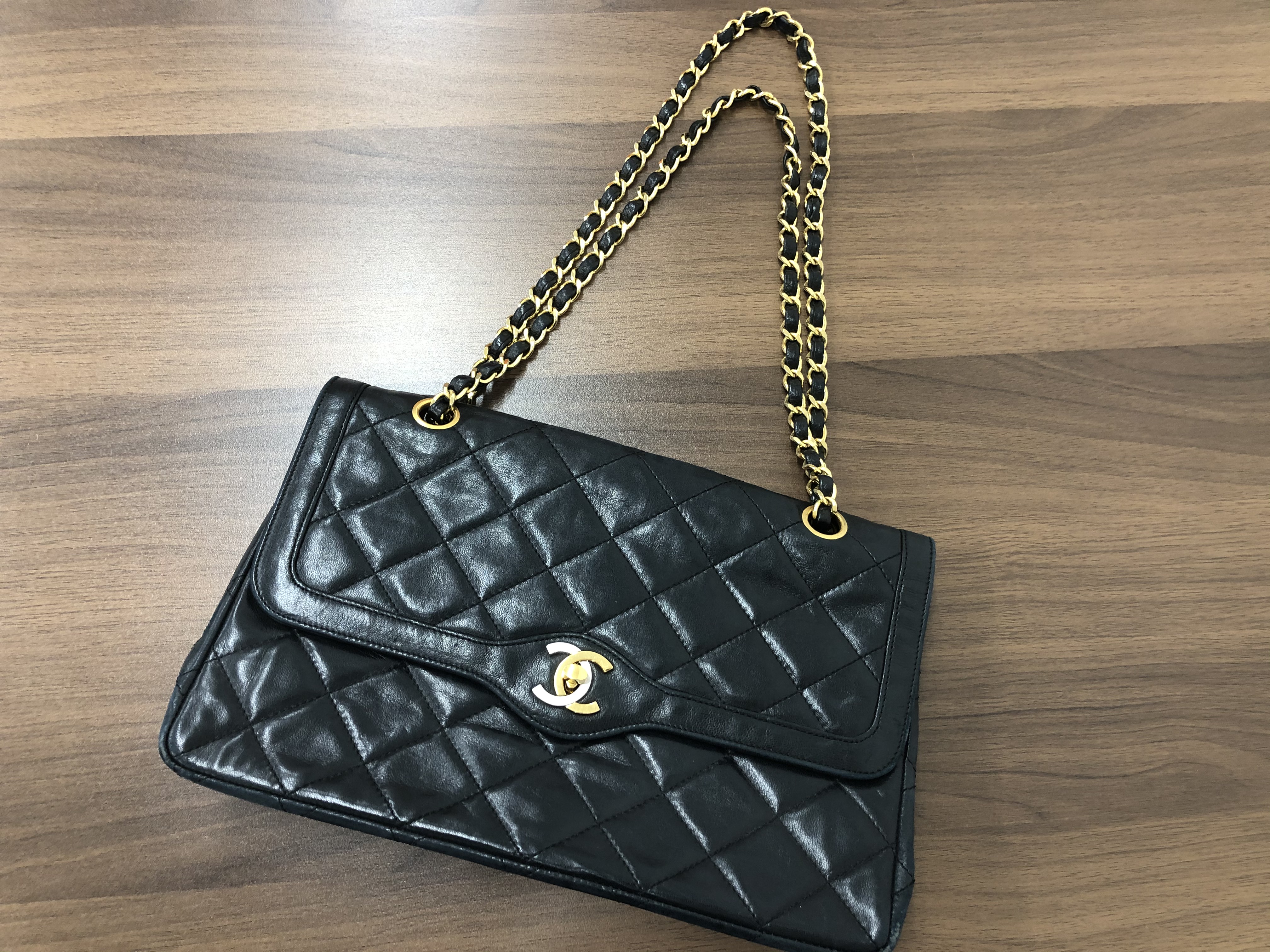 CHANEL シャネルのバッグをお買い取りいたしました。ギャランティーカードがなくても、内側の汚れ、ショルダー切れ、スレも問題ありません。旧型のバック、ヴィンテージ品、廃盤もお買い取りいたします。シャネルならどんな古くても、あきらめずにお持ちください。査定は無料ですよ!