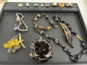 お写真のような指輪やネックレス、小物、古いデザインでも金であれば高価買取可能でございます。