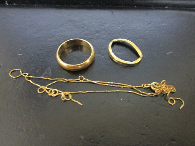 18金製の曲がってしまった指輪とチェーンの切れたネックレスです。