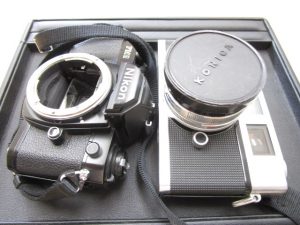 一眼レフカメラのボディとレンジファインダーです。