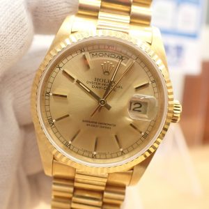 貴金属がふんだんに使われたロレックスの最上位モデルとして、世界中のセレブに愛されるデイデイト。写真は18238金無垢のデイデイトです。30年前の時計ですが、古さを全く感じさせないですね。
