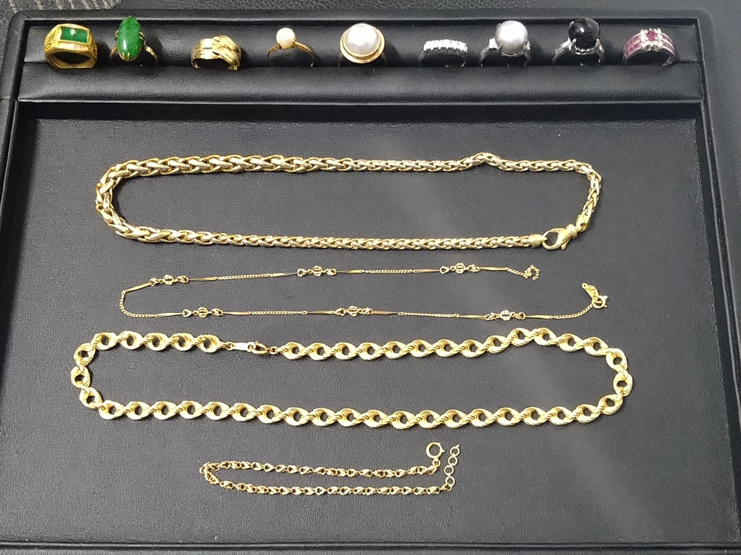 最初はほんの立ち話だけのお客様でしたが、金相場の話題から家に眠らせたままの宝飾品を思い出され、その後ほどなくしてお持ち頂いたお品物の数々です。