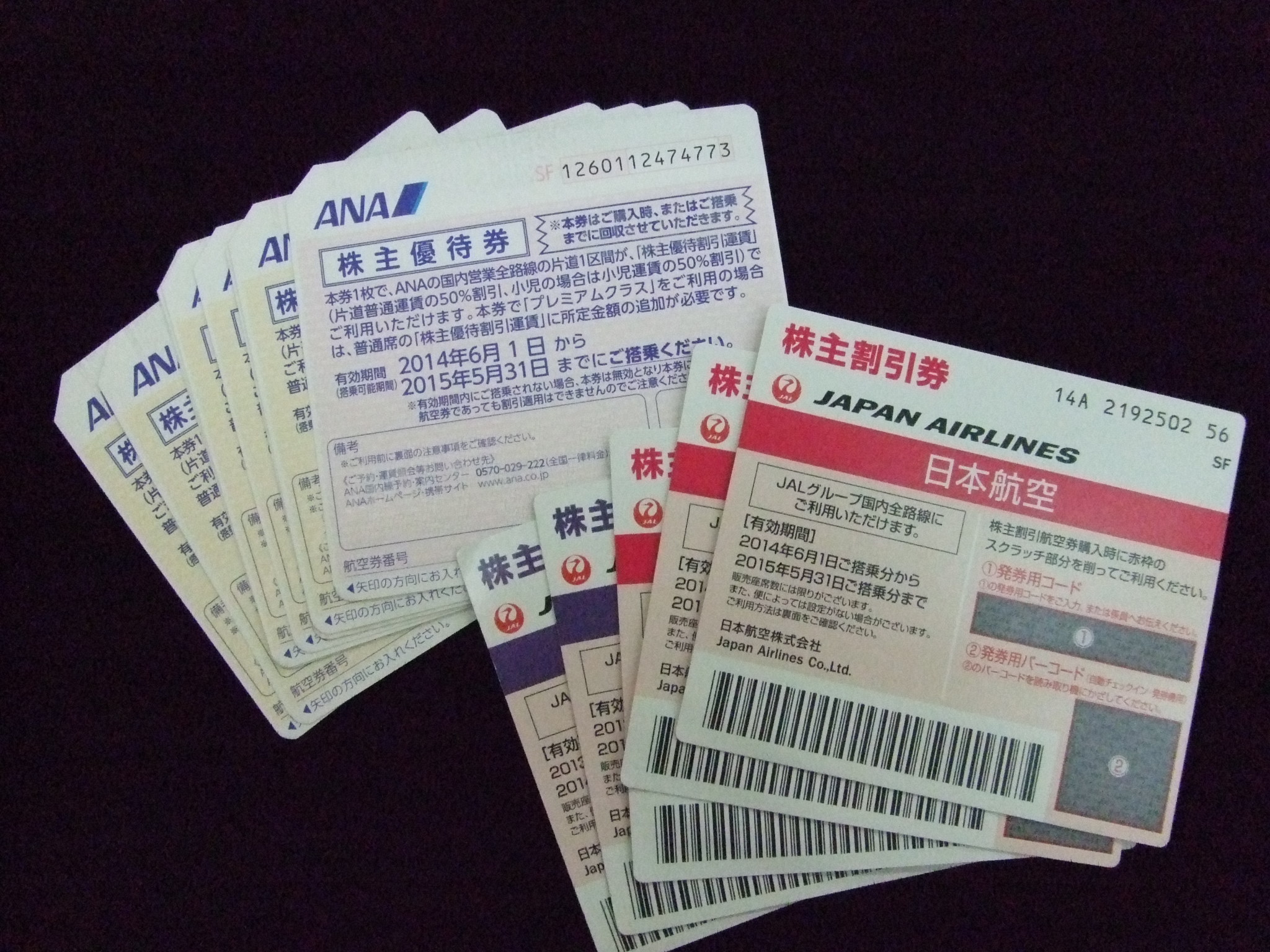 ANA、JALの株主優待券航空券になります。
