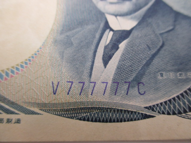 夏目漱石の旧千円札、ゾロ目『Ⅴ777777C』です!
