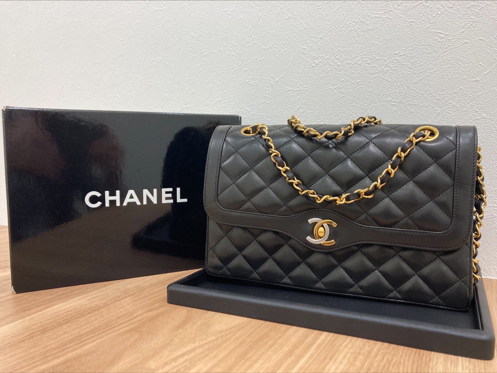 30年前に購入したCHANELのチェーンショルダーバッグ。あるけど・・・箱を開けるのが怖い!というお品でも、しっかり御査定し高価買取いたします。