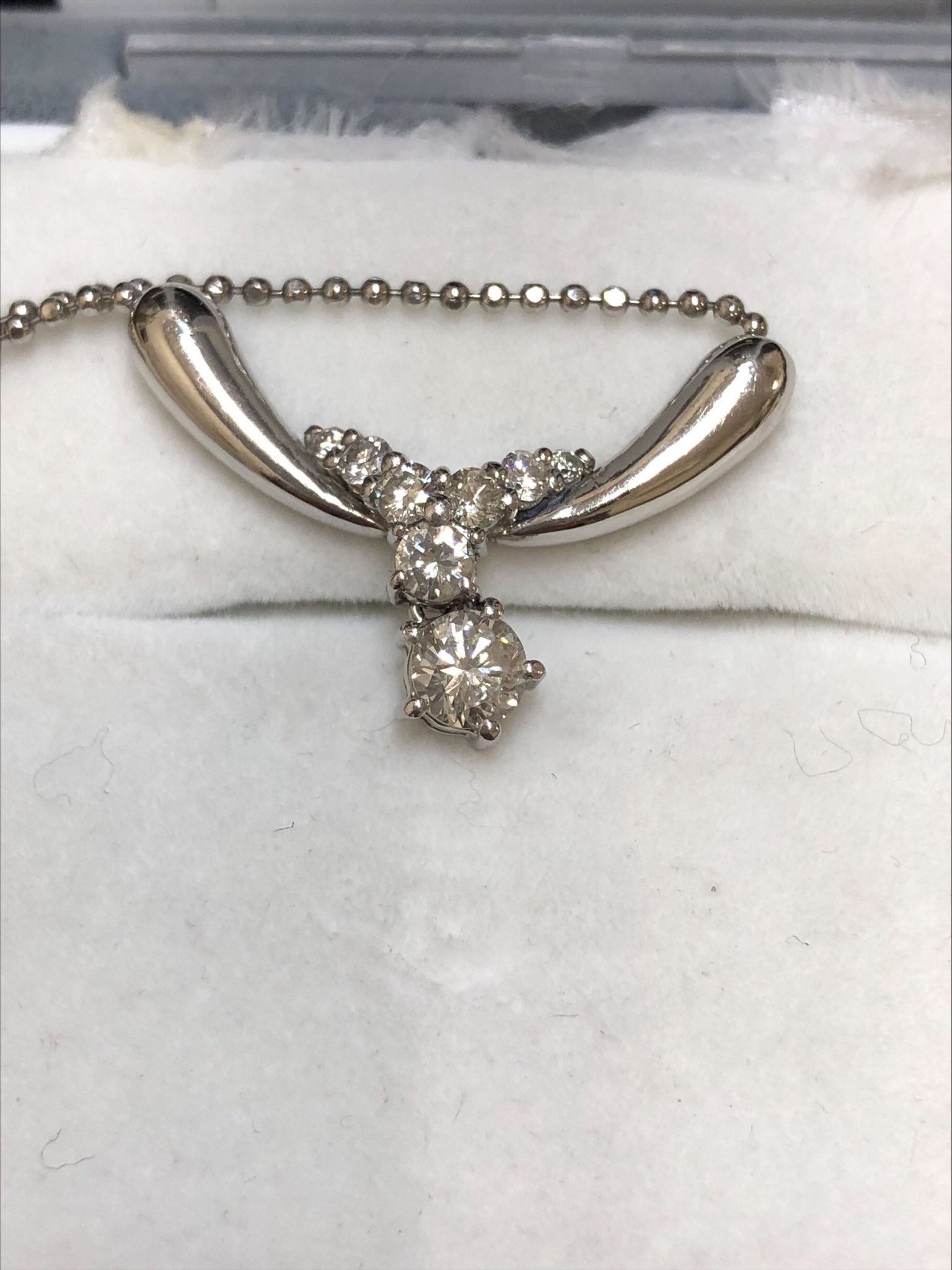 こちらのダイヤのネックレスは使っている貴金属がホワイトゴールドの