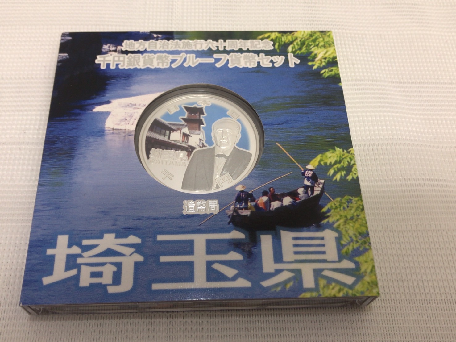 この銀貨は、1947年(昭和22年)5月3日に施行された地方自治法が60周年を迎えたことを記念して、2008年(平成20年)頃から発行されている47都道府県の図柄をあしらった銀貨で、今回は埼玉県バージョン。描かれているのは新一万円札の顔となる渋沢栄一氏でした。
