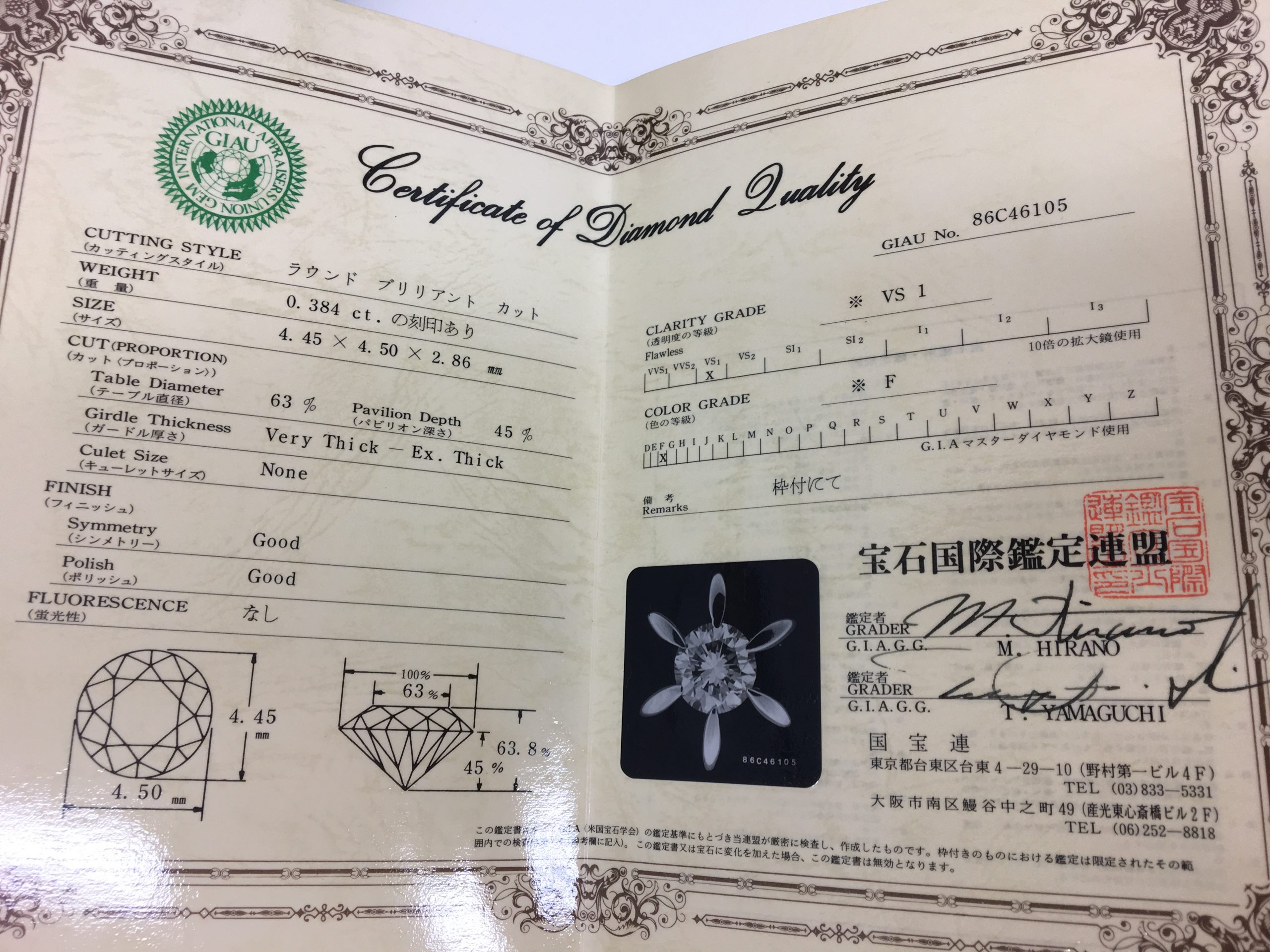 ↑↑こういったダイヤモンド鑑別書でダイヤモンドのグレードが分かっちゃうんです🎵
