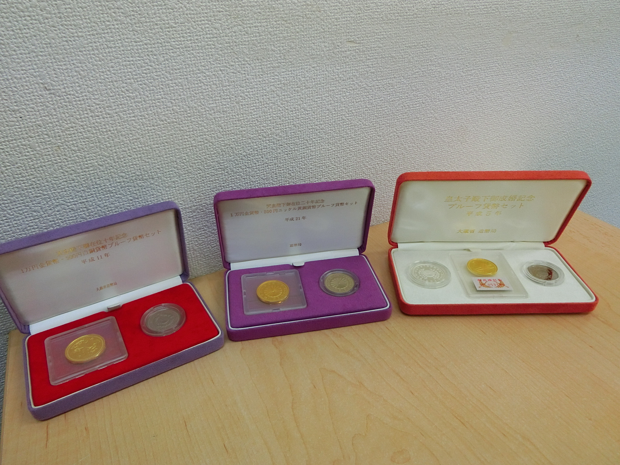 本日は四条畷市よりお越しのお客様から天皇陛下1万円金貨、5万円金貨、10万円金貨をお買取り致しました。