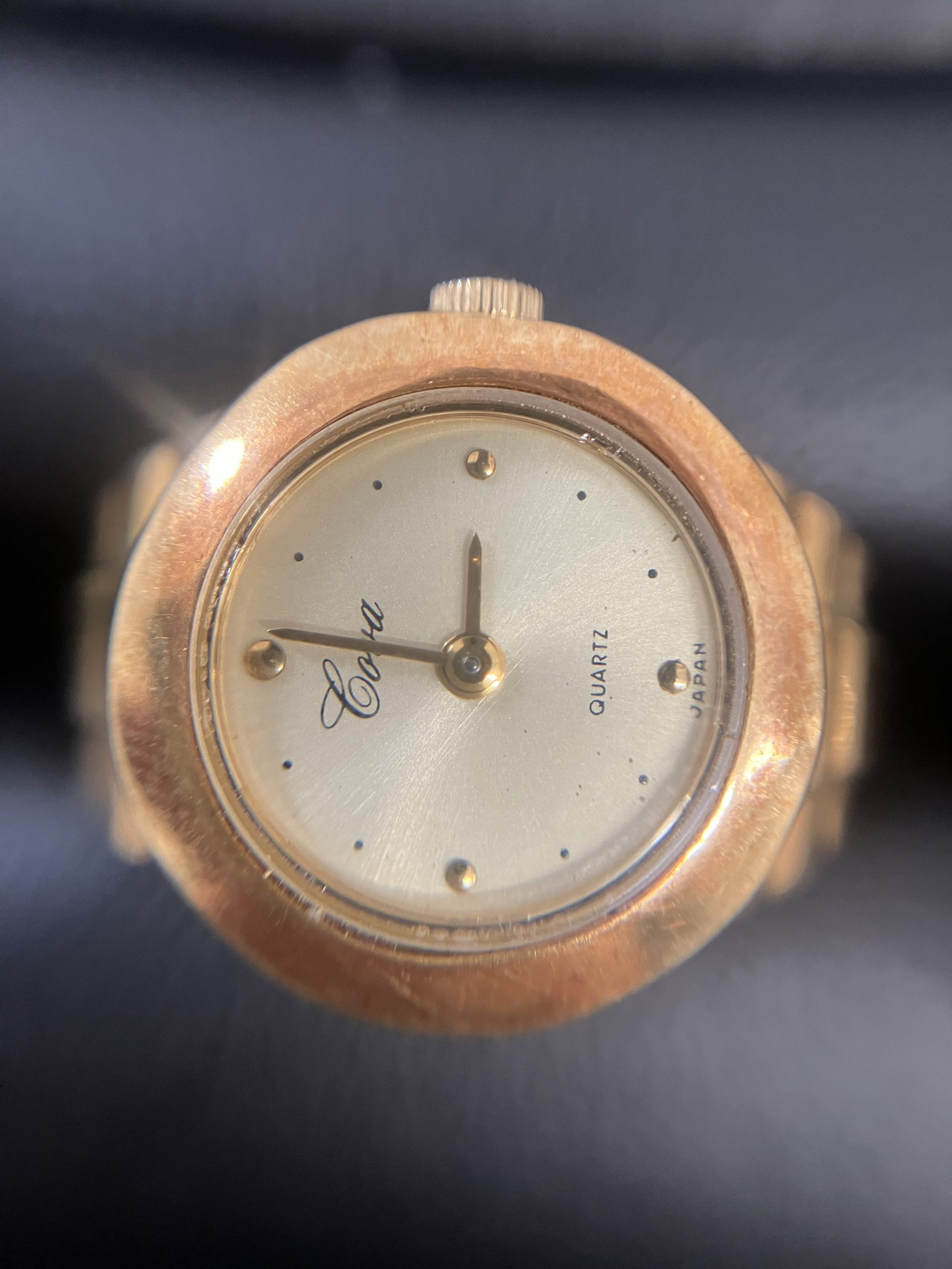 時計があしらわれた指輪です。