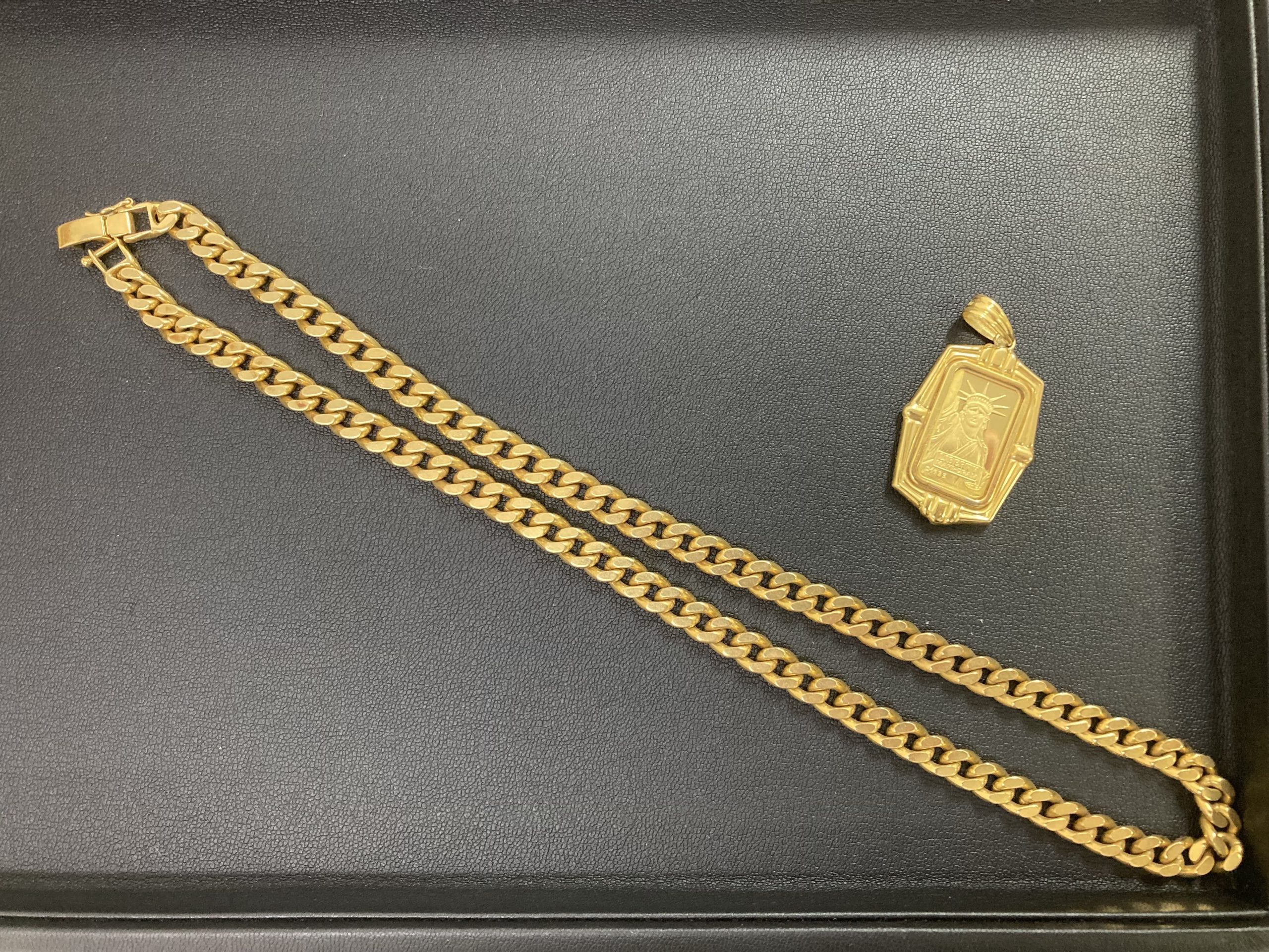 K18 ネックレス100gと金ペンダントトップをお持込みいただきました。