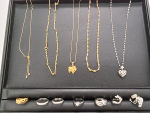 今回、お買取りさせていただいたお品物は『金・プラチナ・ダイヤのアクセサリー』です。
