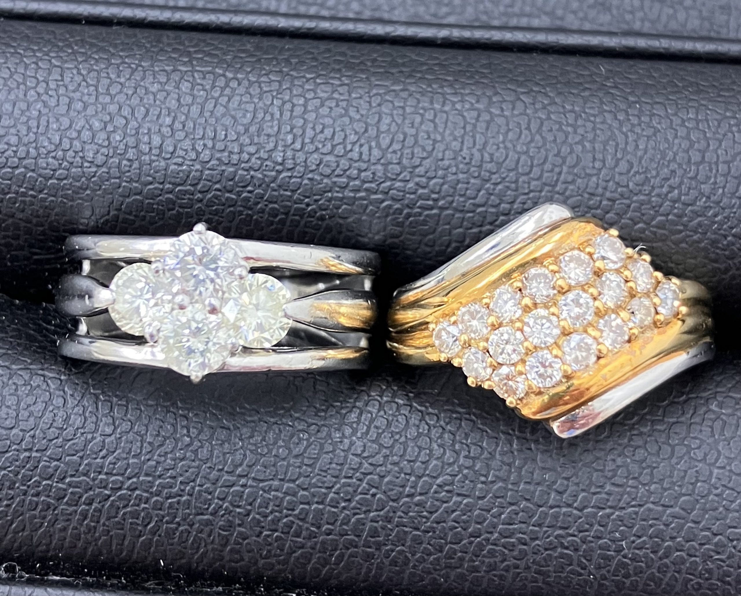 ダイヤモンド4つ光っているリングとK18とPt850のコンビリング
