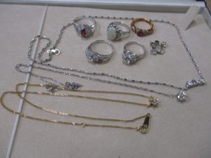 金のネックレスやリング、プラチナのネックレスのにリング等々