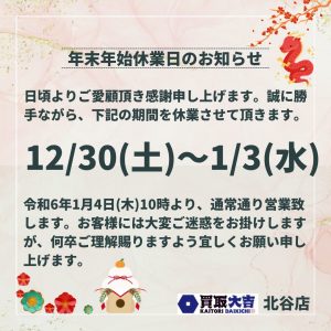 ✨🎍年末年始休業日のお知らせ🎍✨ | 北谷店