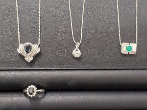 今回、お買取りさせていただいたお品物は『ダイヤ・宝石が綺麗なプラチナのネックレスとリング』です。
