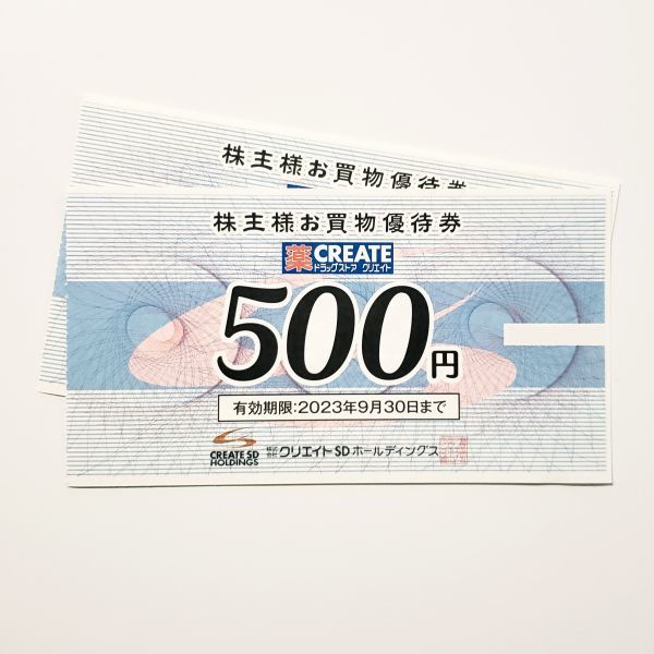 クリエイトSD 薬CREATE 薬局 株主優待券 500円を1枚 400円でお買取いたします。