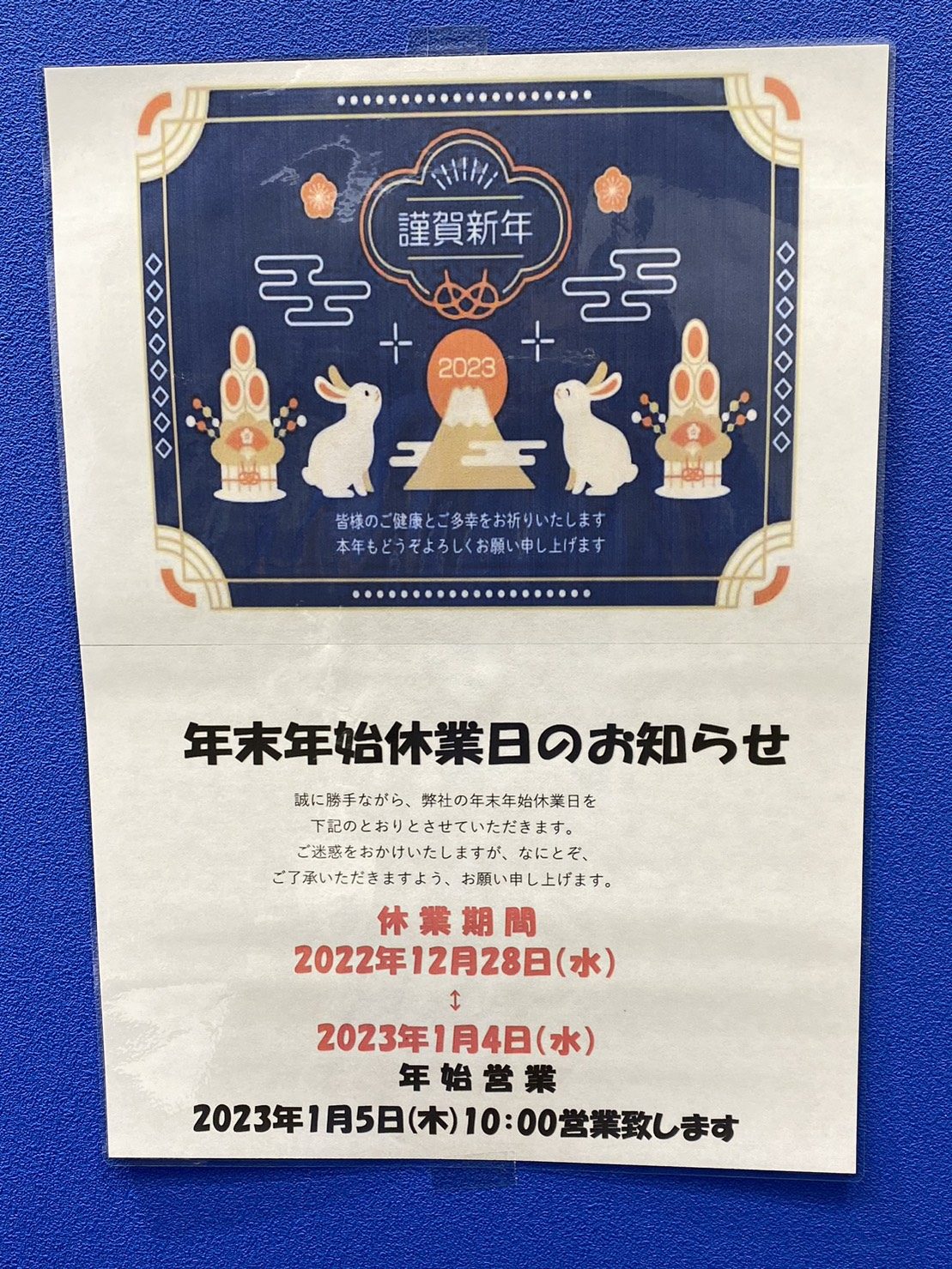 2023年は1月5日(木)10時から営業を開始します。