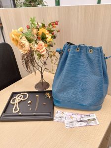 今回、お買取りさせていただいたお品物は『ルイ・ヴィトン エピ ノエ、真珠やアクセサリー、ビール券』です。