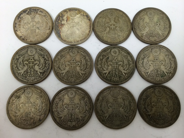 他にも1円銀貨、貿易銀、20銭、10銭、5銭、1銭もあり中でも竜と旭日の模様がついた古銭 銀貨でしたら価値もあがりますよ。