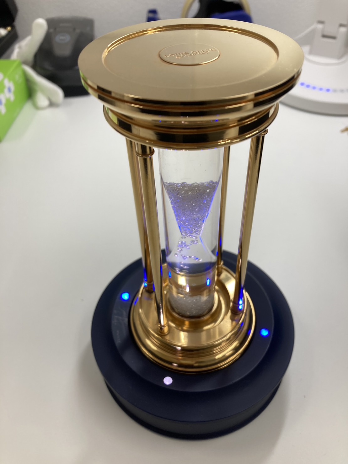 砂時計タイプですが、落ちるのは砂ではなく2000粒のダイヤモンドがキラキラとこぼれ落ちていきます。